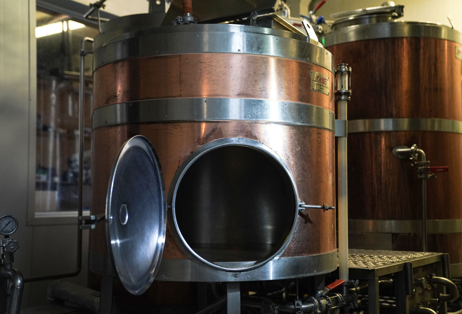 When fermentation is determined to be complete, the now "beer" will be cooled again for conditioning. This time to 30 degrees Fahrenheit. At the end of the conditioning phase the beer will either be filtered or directly transferred into what is called a "Bright Tank". This is where the beer is carbonated and kept for either kegging, bottling, or canning. And yes this is all done in house.