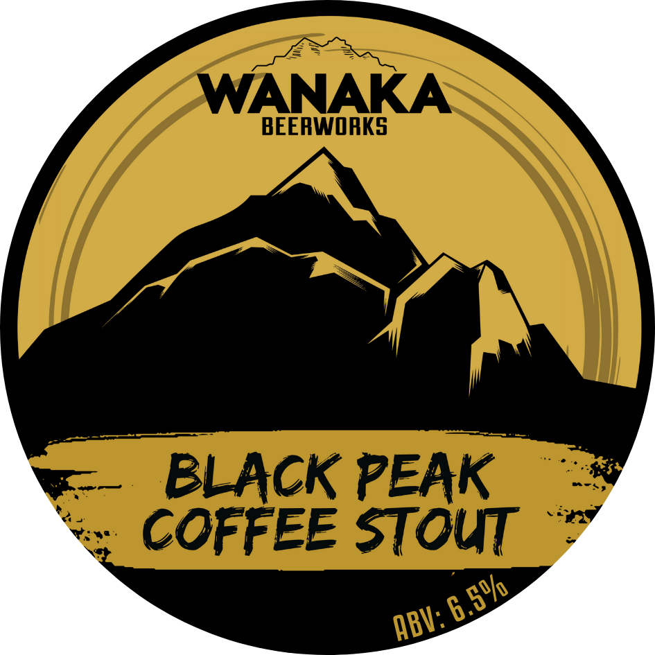 Black Peak is a bold coffee stout infused with locally roasted beans. Heavily roasted malts give it a deep chocolate color, roasty flavor, and a dry, bitter finish. With notes of dark cocoa, slight ashiness, and a touch of umami, this stout balances coffee aromas with a rich malt profile.
